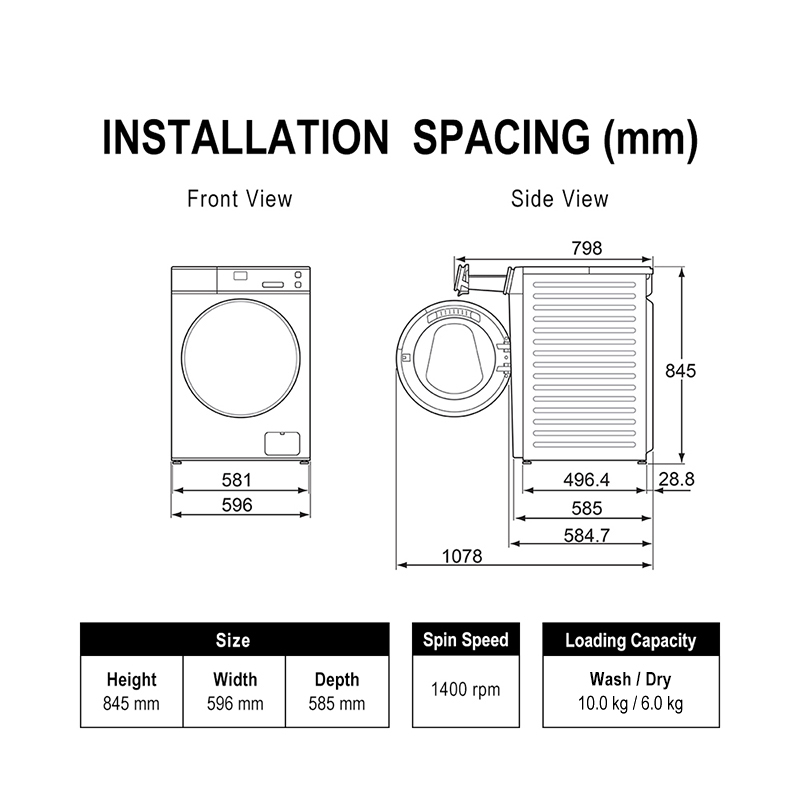 Wash Capacity: 10kg\nDry Capacity: 6kg