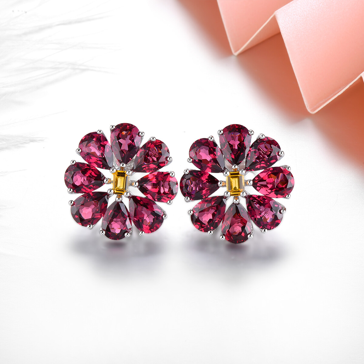 Lohaspie Jewelry Genuine 14 Carats Citrine Stone Original Stud Earring Silver 925 Natural Gemstone Jewellery Natural Rhodolite Rose Garnet Earring For Women Jewelry